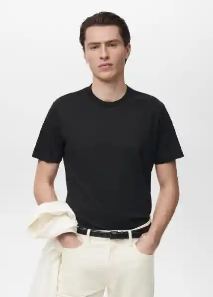 Bajo Recto Cuello Redondo el Modelo Mide 190 cm y Lleva Una Talla M Manga Corta Slim Fit Tejido 100% Algodón - 17031230_99.