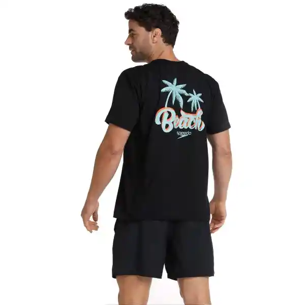 Conoce la Camiseta Manga Corta Coastal Breeze Para Hombre Esta Camiseta Negra de Silueta Clásica y Cuello Redondo en Rib es Ideal Para Usar en tu Día a Día Con Jeans Siempre Que Quieras Sentirte Cómodo y Fresco o Puedes Usarla Para ir a Tus Entrenamientos en la Piscina o el Gimnasio Acompañado de Prendas Deportivas. Esta Camiseta Manga Corta Negra Está Fabricada Con Los Más Altos Estándares de Calidad en Algodón 100% Para Brindar Comodidad y Frescura. Cuenta Con Estampado Playero de Palmeras en la Parte Trasera en Colores Vivos y en el Frente Tiene Nuestro Icónico Logo Speedo Pequeño un Diseño Que Podrás Combinar Facilmente Con Otras Prendas.