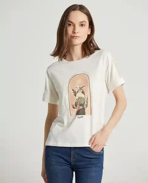 Camiseta Con Estampado y Bordado en el Frente Para Mujer Sku 7706455218597 Ean 609D007A00948 Color Crudo Puro Claro