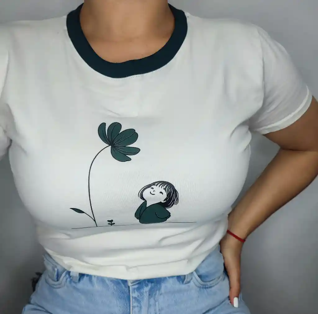 CAMISETA EL ALGODON CON CUELLO EN RIB TELA: ALGODON TALLA UNICA (SEDE PARA UNA TALLA S-M-L) ESTAMPADA BUENA ELONGANCION