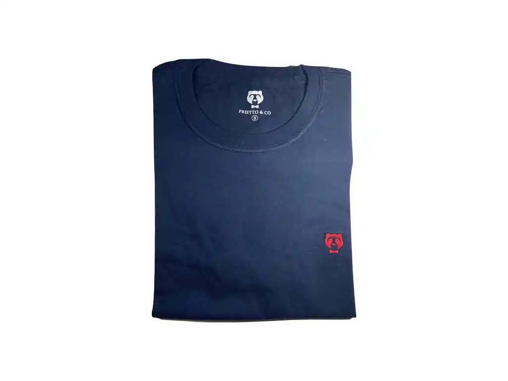 Camiseta manga corta para hombre en 100% algodon color Azul Oscuro con logo de Prietto bordado en color Rojo. Producto colombiano.