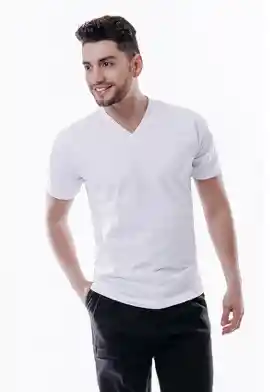 Camiseta cuello en VHombreBlancaAlgodón 185g