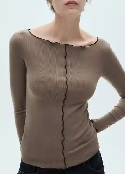 Costuras Decorativas, Cuello Redondo, Diseño Entallado, Manga Larga, Tejido de Canalé - 77065647_30