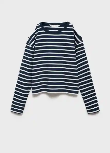 Cuello Redondo Detalle Cut Out Diseño Recto Manga Larga Tejido 100% Algodón Tejido de Rayas - 17093281_56.