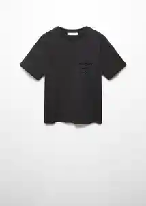 100% Algodón Bolsillo de Parche en el Pecho Cuello Redondo Detalle de Crochet Diseño Recto Manga Corta Sin Cierre - 67015746_99.