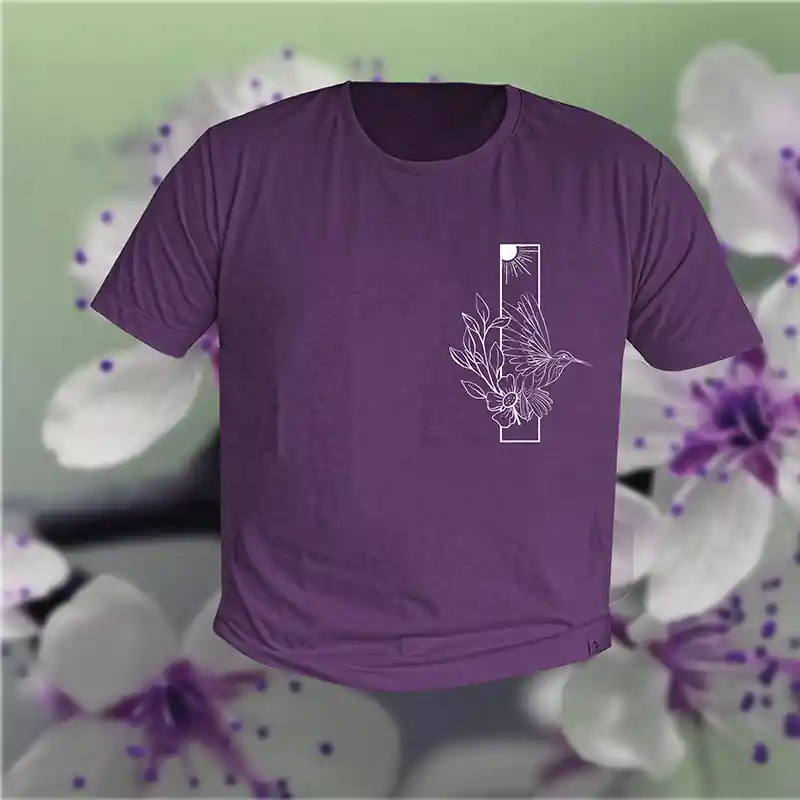 Camiseta silueta crop, 100% algodón reciclado, estampado colibrí y flor punto corazón.