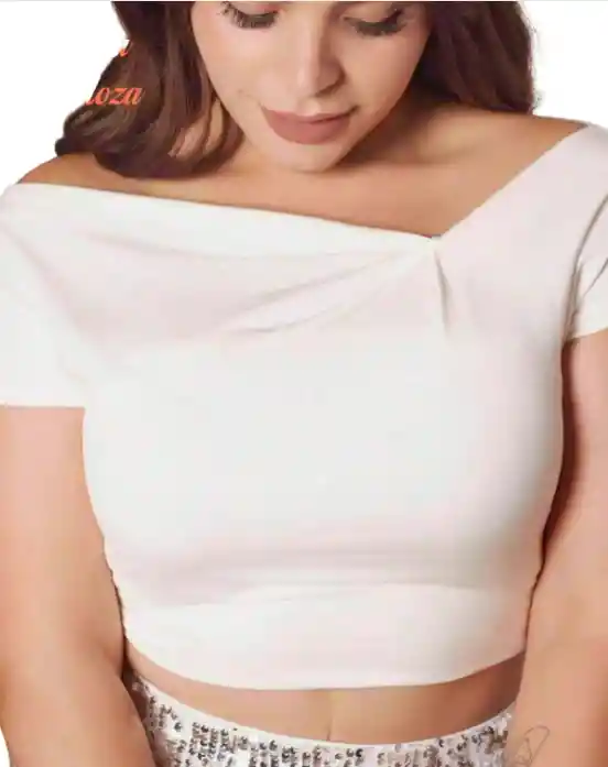 Crop top blanco estilo off-shoulder • Diseño sin hombros que resalta el cuello y los hombros con un toque sensual y sofisticado. • Detalle de pliegues sutiles en el escote que aportan textura y delicadeza. • Corte tipo crop que deja ver parte del abdomen, ideal para looks frescos y juveniles. • Tela ligera y cómoda, perfecta para climas cálidos o eventos casuales con estilo. ✨ Complemento con parte inferior brillante • Aunque no se ve completamente, se aprecia una prenda inferior con lentejuelas que añade un toque glamuroso. • Contrasta con el blanco del top, creando un balance entre lo elegante y lo festivo. talla s talla m