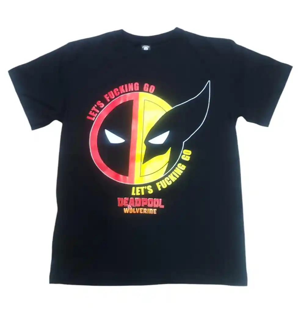 Camiseta en algodón ideal para cualquier clima, caliente, frio, medio, es muy fresco su material. el cuello es redondo, con costuras reforzadas. color negro, la horma de la camiseta es clásica, sirve para hombre y para mujer estampado full serigrafía, muy buena durabilidad con un estampado de DPOOL Y WOLVERINE, es un estampado de excelente calidad, durabilidad garantizada, con estampado también en la espalda en colores grises. Producto elaborado en Colombia de muy buena calidad. la camiseta se envia en bolsa. envíos a nivel nacional Talla M disponible