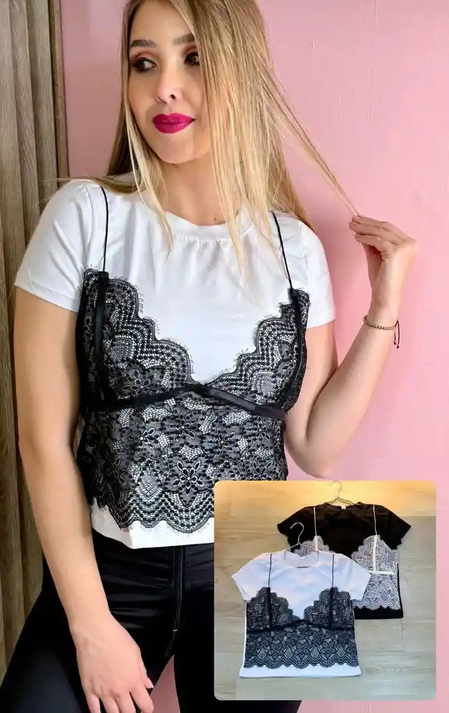 camiseta con encaje talla unica, blanca y negra