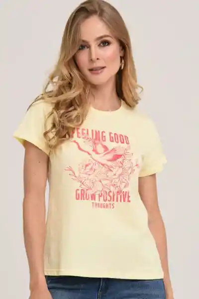 En Tejido de Punto Fondo Entero Con Estampado Localizado en Frente Cuello Redondo Manga Corta.