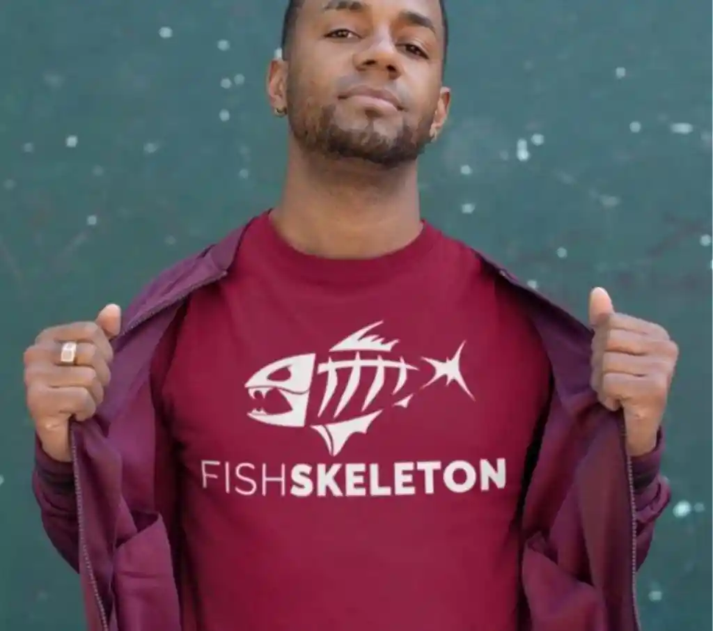 Camisa FishSkeleton Vinotinto - Cuello V, en algodón, estampada. Imagen de referencia, producto disponible en cuello en V.