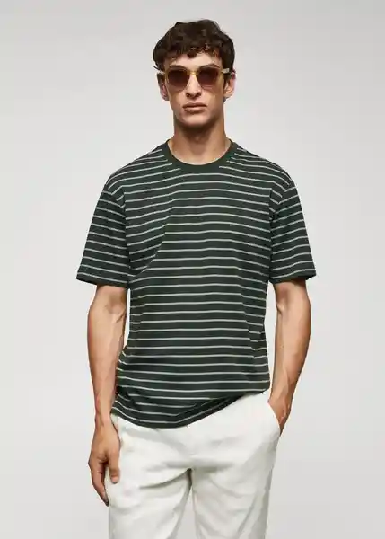 Bajo Recto Con Aberturas Laterales el Modelo Mide 190 cm y Lleva Una Talla M Estampado de Rayas Horizontales Manga Corta Regular Fit Tejido 100% Algodón - 57010755_49.
