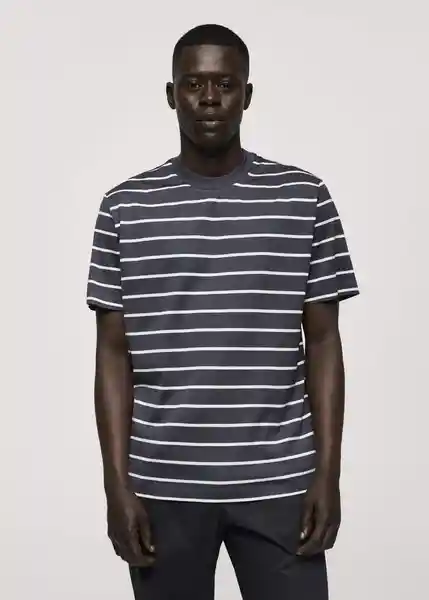 Bajo Recto, Cuello Redondo en Contraste, el Modelo Mide 187 cm y Lleva Una Talla M, Estampado de Rayas Horizontales, Manga Corta, Regular Fit, Tejido 100% Algodón, Tejido Ligero - 77092537_56.