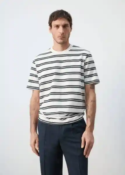 Bajo Recto Cuello Redondo Con Ribete a Contraste Estampado de Rayas Exclusivo Online Largo Standard Manga Corta Regular Fit Tejido Mezcla de Algodón - 27075987_01.