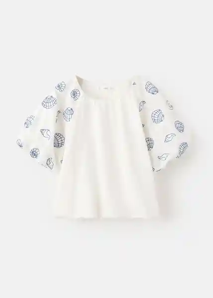 Cuello Redondo Detalles Bordados en Las Mangas Diseño Recto Manga Corta Tejido 100% Algodón - 27016740_02.