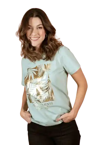 En Tejido de Punto Cuello Redondo Manga Corta Estampado Localizado.