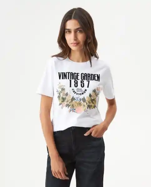 Gráfica Para Mujer Manga Corta Silueta Slim Que Realza la Figura. Cuello Redondo Clásico Puños Rectos. Elaborada en 100% Algodón de Tacto Suave Fresca Ligera y Agradable al Contacto Con la Piel. Estampado Localizado en el Frente Con Técnica Flock Que Añade Textura Suave al Diseño Proporcionando Toque Diferente y de Calidad. Ean- 709G007Bla110601 Plu- 1111133193664.