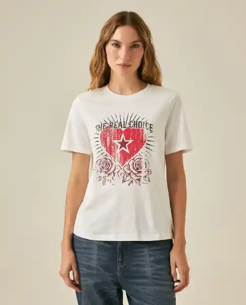 Talla: M. Gráfica Femenina Slim Fit Cuello Redondo Manga Corta en Algodón 100%. Tela Suave Con Tacto Suave. Estampado Textil Localizado en Frente. Gráfico Localizado al Frente Grande de Corazón y the Real Choice. Construcción Slim Fit Con Gráfico Statement. Silueta Slim Estilizada. Ean- 701H029Bla110601 Plu- 1111133258134.
