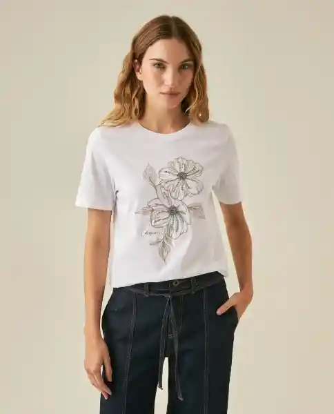 Talla: XS. Gráfica Femenina Slim Fit Cuello Redondo Manga Corta en Algodón 100%. Tela Suave Con Tacto Suave. Bordado Con Mostacillas en Frente. Bordado Tiene Canutillos. Construcción Con Bordados Artesanales Brillantes. Silueta Slim Estilizada. Ean- 701H009Bla110601 Plu- 1111133253221.
