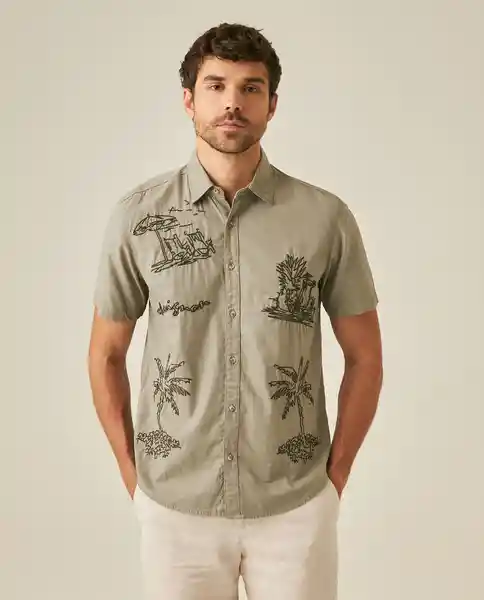 Masculina Manga Corta Classic Fit Resort en 100% Algodón. Twill Teñido. Cuello Camisero. Bordados Localizados en Frente Con Dibujo de Palmeras Alrededor de la Prenda. Botones Con Efecto. Construcción Resort Con Bordados Temáticos Tropicales. Silueta Classic Fit Relajada. Ean- 611H012 gri170613 Plu- 1111133257908.