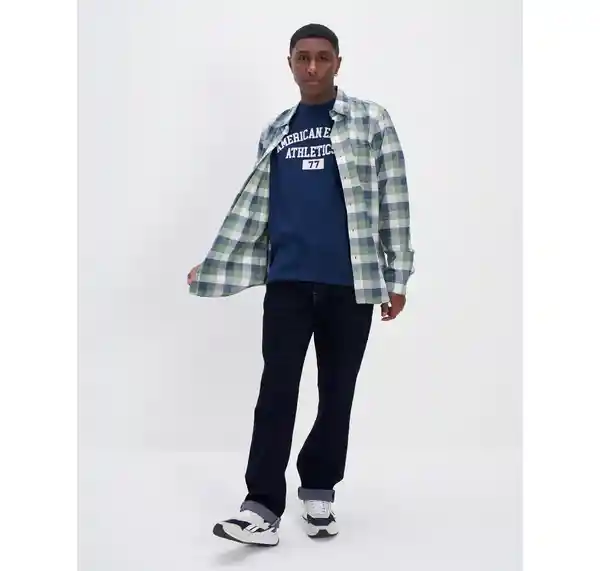 Hecho de Una Mezcla de Algodón Súper Suave. Cuello Redondo Manga Corta Gráficos en el Pecho Con Logotipo American Eagle Ruedo Recto.