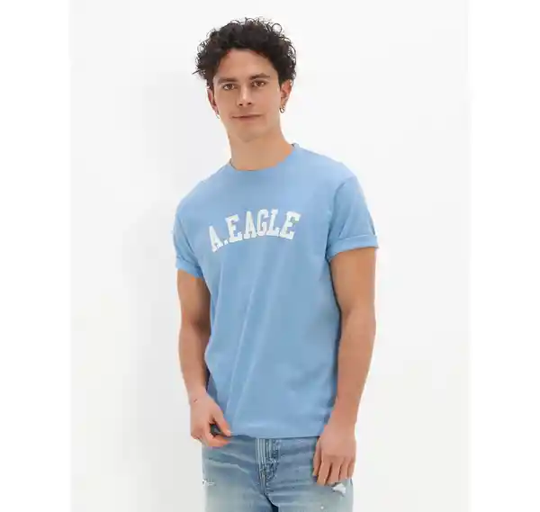 Hecho de Una Mezcla de Algodón Súper Suave. Cuello Redondo Manga Corta Gráficos en el Pecho Con Logotipo American Eagle Ruedo Recto.