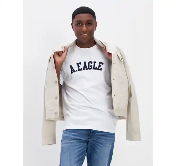 Hecho de Una Mezcla de Algodón Súper Suave. Cuello Redondo Manga Corta Gráficos en el Pecho Con Logotipo American Eagle Ruedo Recto.