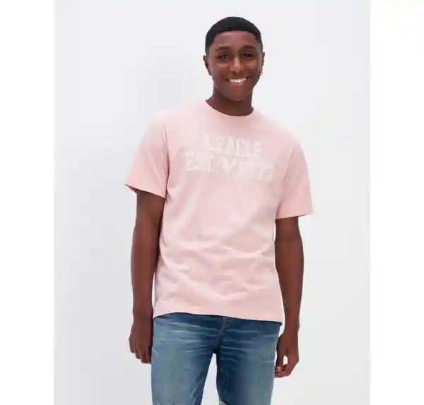 Hecho de Una Mezcla de Algodón Súper Suave. Cuello Redondo Manga Corta Gráficos en el Pecho Con Logotipo American Eagle Ruedo Recto.