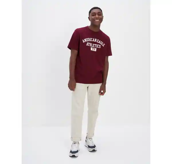 Hecho de Una Mezcla de Algodón Súper Suave. Cuello Redondo Manga Corta Gráficos en el Pecho Con Logotipo American Eagle Ruedo Recto.