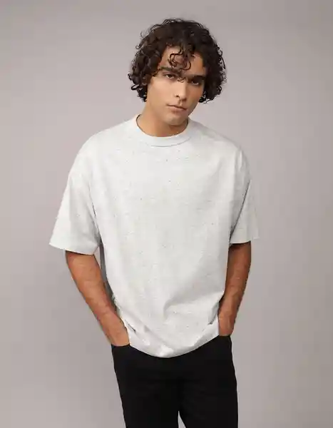 Jersey de Algodón Pesado Cuello Redondo Mangas Cortas de Gran Tamaño Dobladillo Recto.