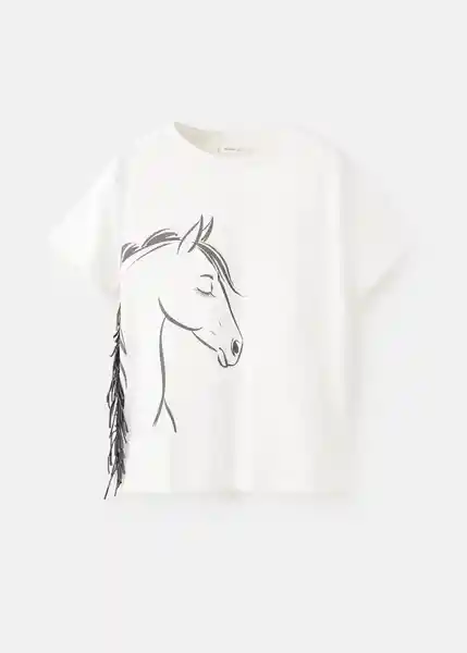 Caballo Cuello Redondo Detalle de Flecos Diseño Estampado Manga Corta Tejido 100% Algodón - 27021509_02.