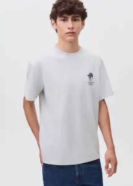 Cuello Redondo Dibujo Estampado en la Parte Delantera Diseño Estampado Diseño Recto Manga Corta Tejido de Algodón - 17093822_50.