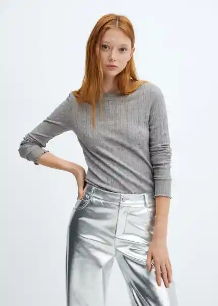 Cuello Redondo Diseño Recto Disponible Plus Manga Larga Ribetes en Relieve Tejido de Punto Fino - 57098266_94.
