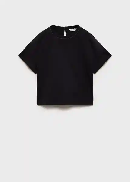 Cierre de Botón en la Parte Posterior Cuello Redondo Detalle de Abalorios Diseño Corto Diseño Recto Manga Corta Tejido 100% Algodón - 87008283_99.