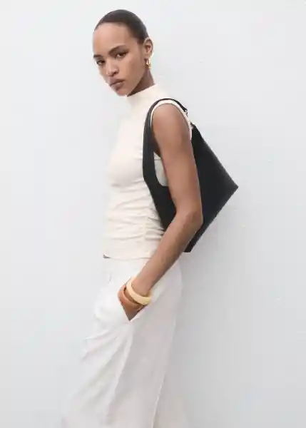 Cuello Perkins Diseño Entallado Fruncidos Laterales Sin Cierre Sin Mangas Tejido Mezcla de Modal y Algodón Tirantes Anchos - 17074140_02.