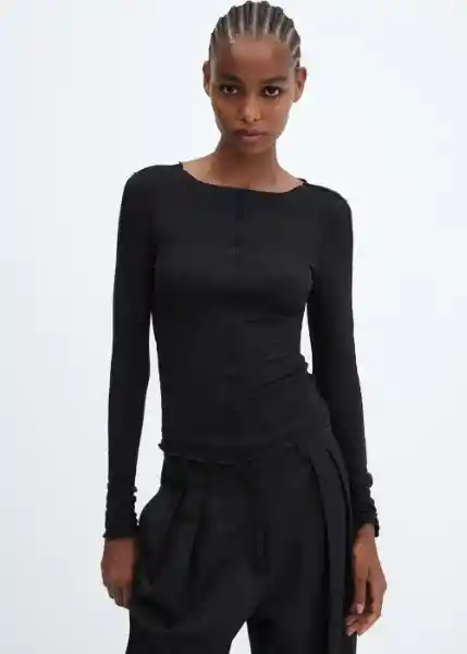 Costuras Decorativas Cuello Redondo Diseño Recto Looks de Oficina Manga Larga Tejido de Punto de Canalé - 57025982_99.
