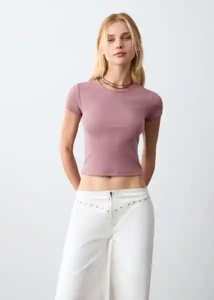 Cuello Redondo Diseño Entallado Manga Corta Tejido de Algodón - 27054776_75.