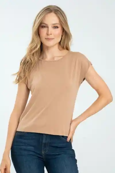 En Tejido de Punto Fondo Entero Cuello Redondo Con Sesgo de 1 cm Manga Corta Rodada Ruedos de 1 cm Silueta Tipo Cajón.