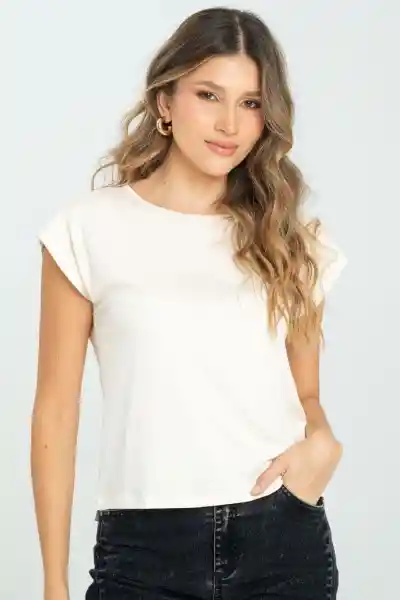 En Tejido de Punto Fondo Entero Cuello Redondo Con Sesgo de 1 cm Manga Corta Rodada Ruedos de 1 cm Silueta Tipo Cajón.