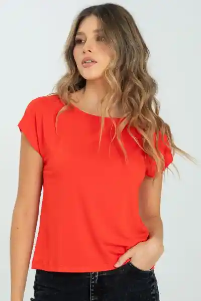 En Tejido de Punto Fondo Entero Cuello Redondo Con Sesgo de 1 cm Manga Corta Rodada Ruedos de 1 cm Silueta Tipo Cajón.