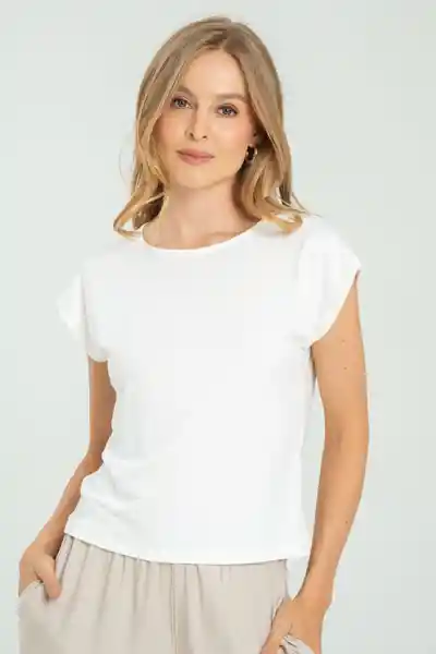 En Tejido de Punto Fondo Entero Cuello Redondo Con Sesgo de 1 cm Manga Corta Rodada Ruedos de 1 cm Silueta Tipo Cajón.