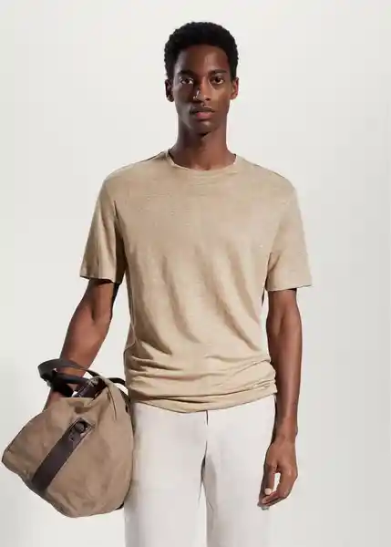 Cuello Redondo Diseño Estándar Manga Corta Slim Fit Tejido 100% de Lino Tejido Ligero - 47095923_07.