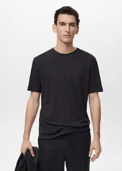 Bajo Recto Cuello Redondo el Modelo Mide 190 cm y Lleva Una Talla M Manga Corta Slim Fit Tejido Mezcla de Lino - 87015938_99.