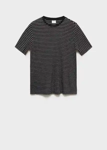 Bajo Recto Cuello Redondo Con Ribete a Contraste Diseño de Rayas el Modelo Mide 190 cm y Lleva Una Talla M Manga Corta Regular Fit Tejido Mezcla de Lino - 87015939_99.