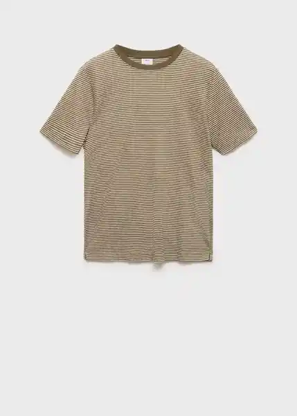 Bajo Recto Cuello Redondo Con Ribete a Contraste Diseño de Rayas el Modelo Mide 190 cm y Lleva Una Talla M Manga Corta Regular Fit Tejido Mezcla de Lino - 87015939_43.