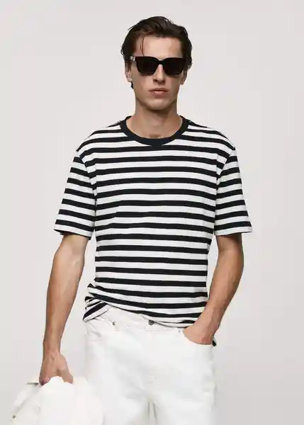 Bajo Recto, Cuello Camisero en Contraste, el Modelo Mide 185 cm y Lleva Una Talla M, Estampado de Rayas Horizontales, Manga Corta, Regular Fit, Tejido 100% Algodón - 77040609_56.