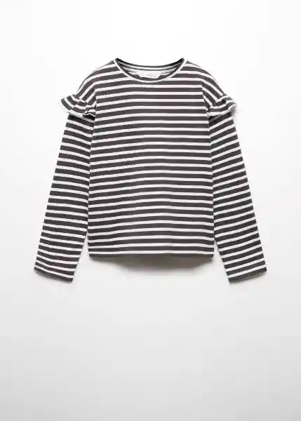 100% Algodón Cuello Redondo Diseño Recto Estampado de Rayas Sin Cierre Volantes en Las Mangas - 67050665_95