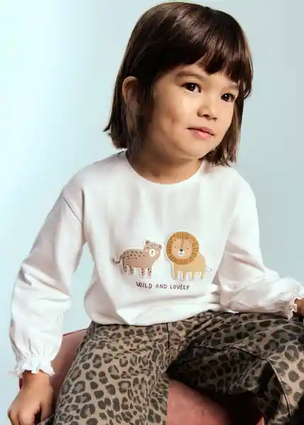Bajo Fruncido Elástico Cuello Redondo Detalle Fruncido en la Manga Diseño Estampado Diseño Recto Estampado Animal León Bordado Delantero Manga Larga Tejido 100% Algodón - 17056727_02.