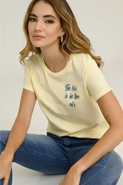 En Tejido de Punto Cuello Redondo Manga Corta Estampado Localizado.