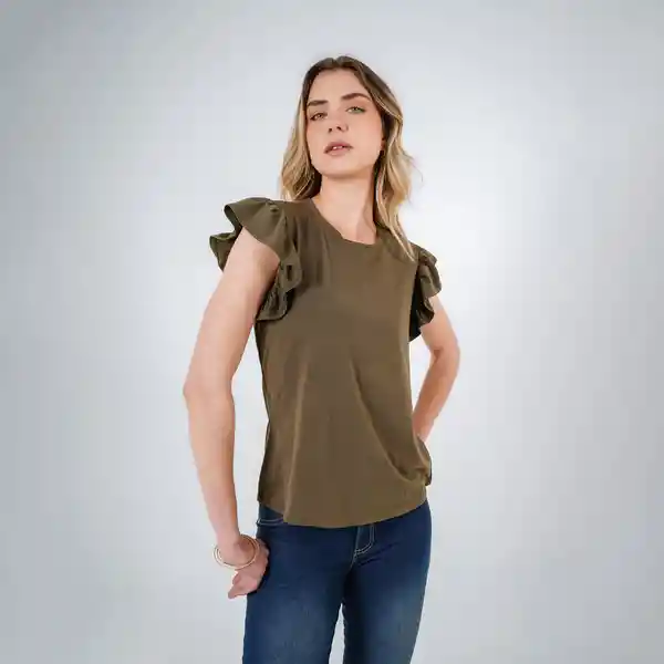Color Verde. Manga Corta Bolero y Escote Redondo.